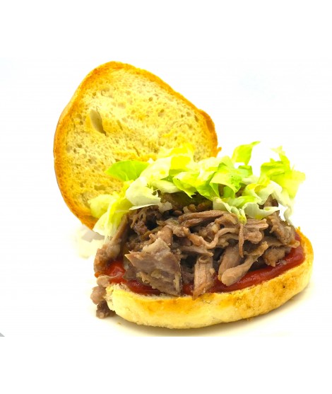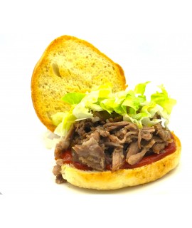 Hamburger di Scottona Confit, first choice meat ... we do it completely by hand only with noble cuts, salt and pepper ... half cooking on the grill gives the possibility to work this product to all those places that have no possibility to cook .Regenerate in the microwave for a minute or on the grill and that's it ... succulent and genuine.
